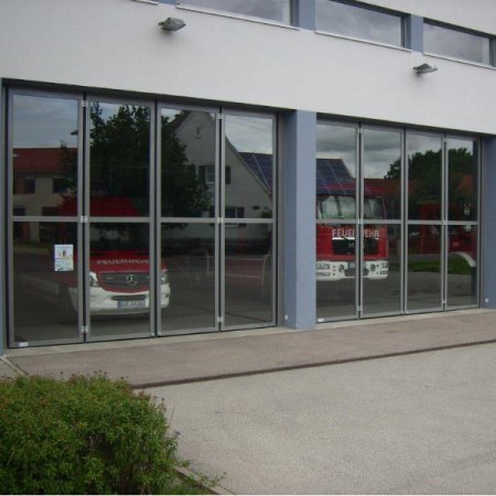Diese bestehen aus einzelnen senkrechten Torflügeln, die zu einem seitlichen Paket durch eine Schiebebewegung zusammengefaltet werden. Die Füllungen der Torflügel sind mit verschiedenen Glasarten oder geschlossenen Füllblechen möglich.
